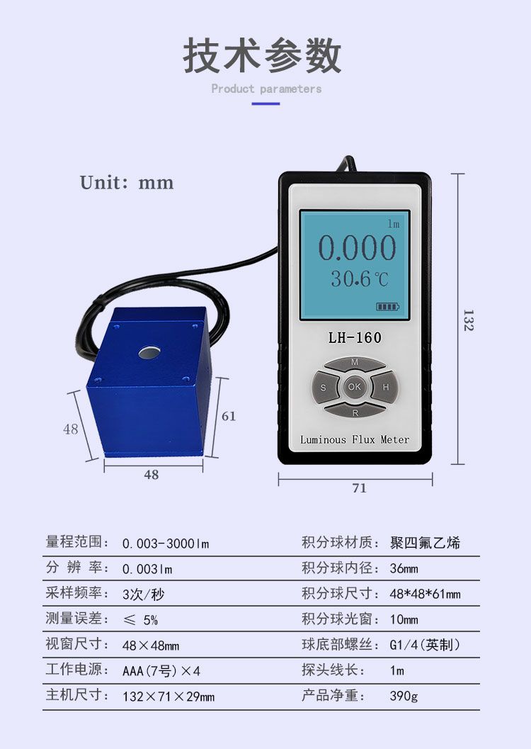 LH 光通量测试仪光流明计LED灯强度检测仪160